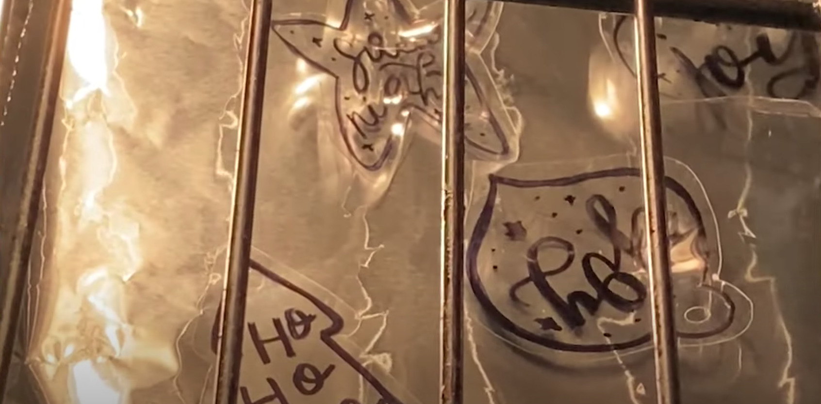 After you are done cutting them out, place them on a cookie sheet at 340 degrees for 10-30 seconds, until they shrink. It is so satisfying to watch! My kids loved it. After they have cooled down, you can go ahead and top your gifts with them!