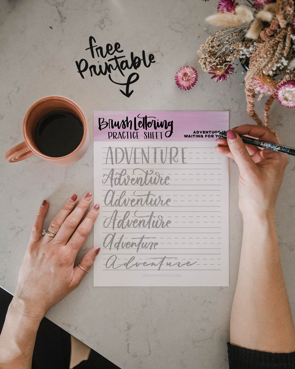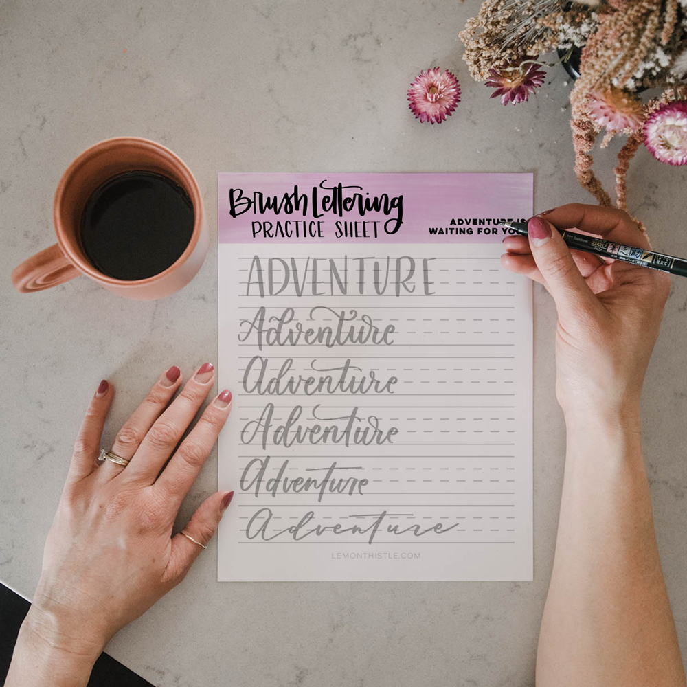 I hope you enjoy this free adventure brush lettering practice sheet! And if you want to share your practicing, you know I’d love to see it! You can tag me on instagram @colleenpastoor!