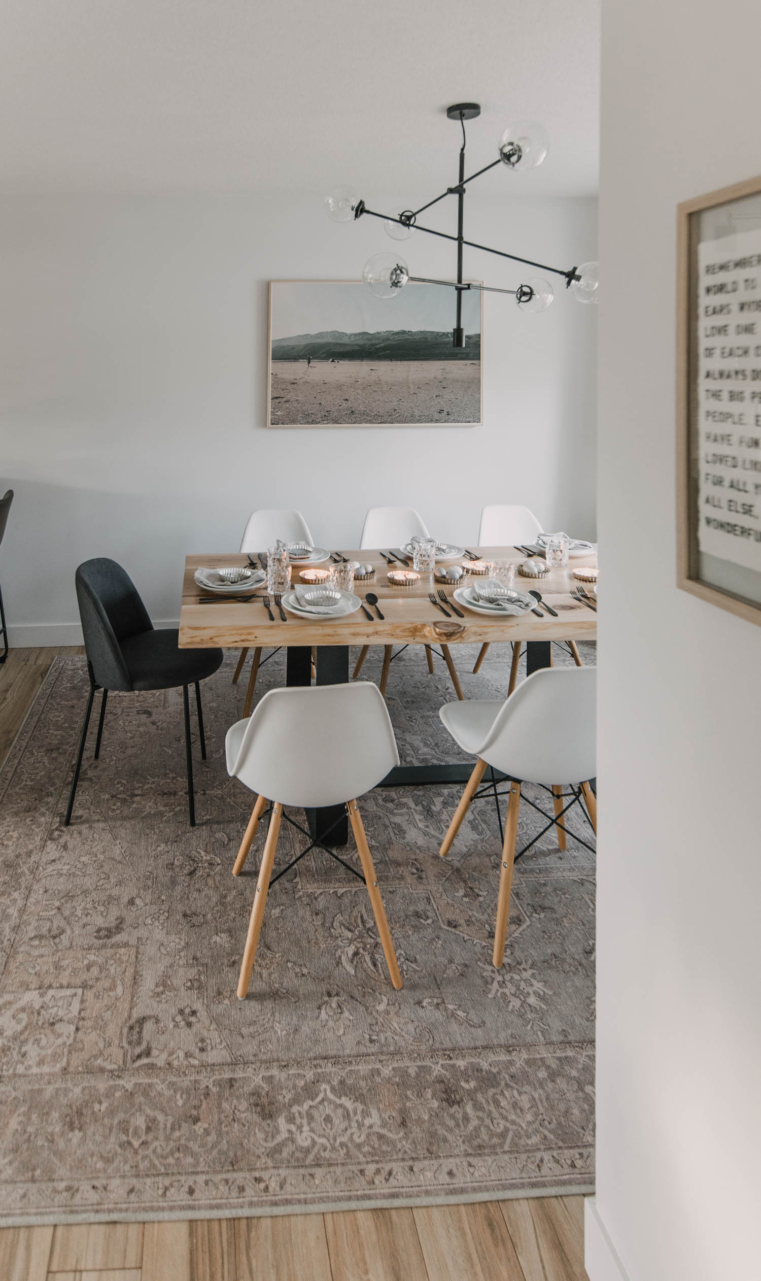 I finished off the tablescape with my simple white dishware and black flatware. This is our everyday dishes, I don’t have a fancy set. I love that they can be used with any fancy table and that the black flatware (IKEA!) adds contrast.