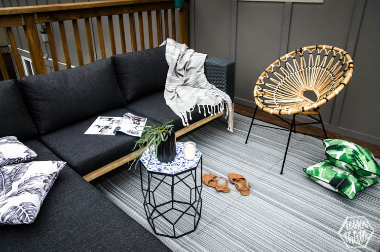 I really love how the black legs and details modernize the classic wicker design and play off the darker sectional. They’re the perfect pair for me!
