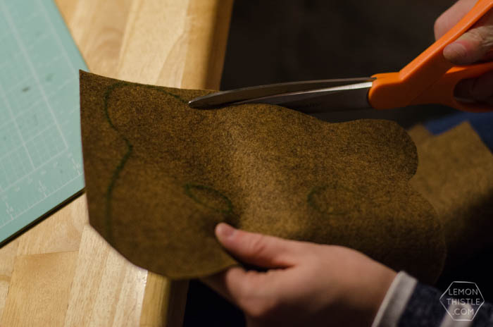 Use a fabric pencil (or a marker) to trace out the pieces and then cut them out. I cut around the edges with the sharp scissors (fabric scissors are best if you have them! I use these guys and they’re amaaazing) and then I cut the eyes out using a craft knife. Craft knife blades dull pretty quickly when you’re cutting felt, so you might want to get a pack of refills (cheaper than a new knife itself). When they’re all cut out, you can lay them out how you’d like them to look (because how can you resist?) to make sure they’re all the right size. The one thing I’d like to point out is that these templates are hand-drawn. So they’re not perfectly symmetrical and I really like that about them. If you prefer symmetrical, you could fold your template in half first and cut them out that way.