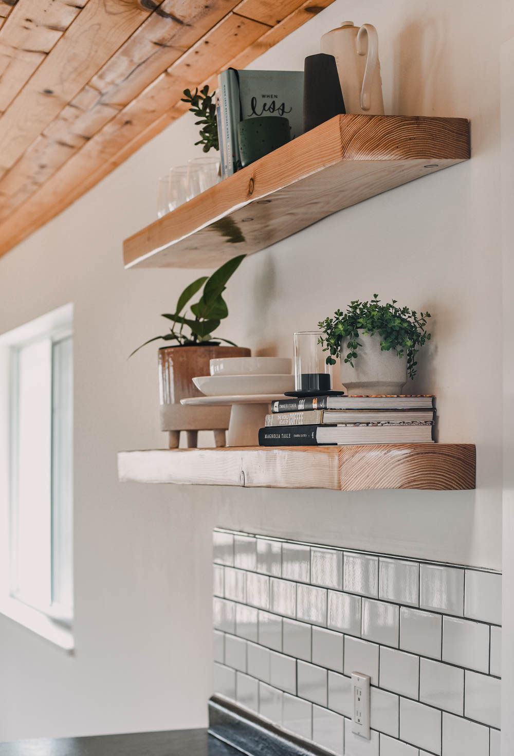 I’m such a fan of open shelving in kitchens. I put them in my own kitchen, in our last kitchen and even did a video about how to style open shelving in the kitchen. I love that they’re both functional and beautiful, they add visual interest to a space and they open up sight lines making a kitchen feel more spacious and bright.
