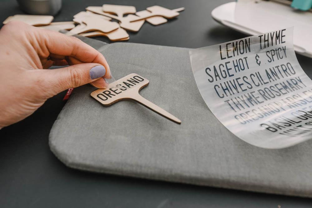 The first thing you’ll need to do is design your labels for the wooden plant markers. I just typed out my herbs and scrolled through the Cricut Access fonts until I found one I loved.