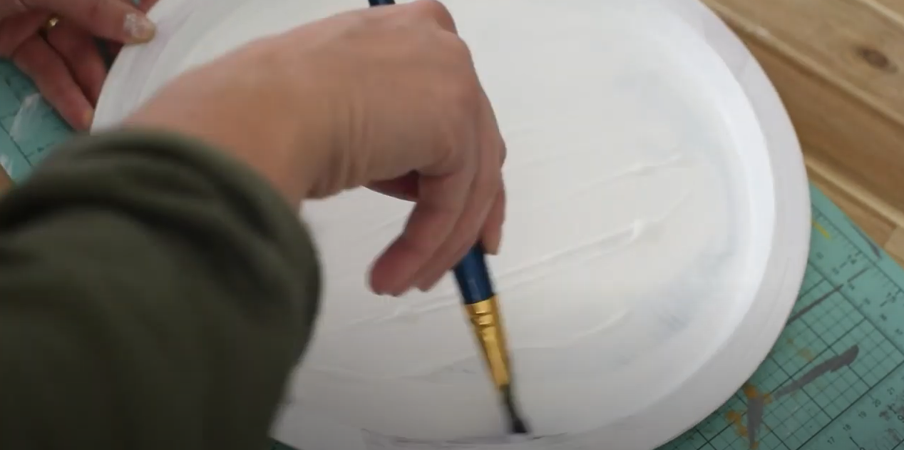 To make this sign, you’ll start by painting the aluminum with acrylic paint. This will take a few coats to cover the bright patterns. If I were to do this again, I might try use spray paint to see if it’s faster!