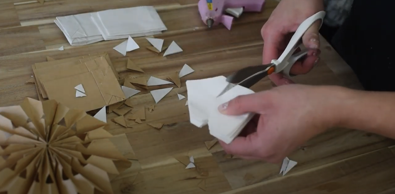 These paper bag snowflakes are super simple to make using tiny paper bags, hot glue and the sharpest scissors you can find.