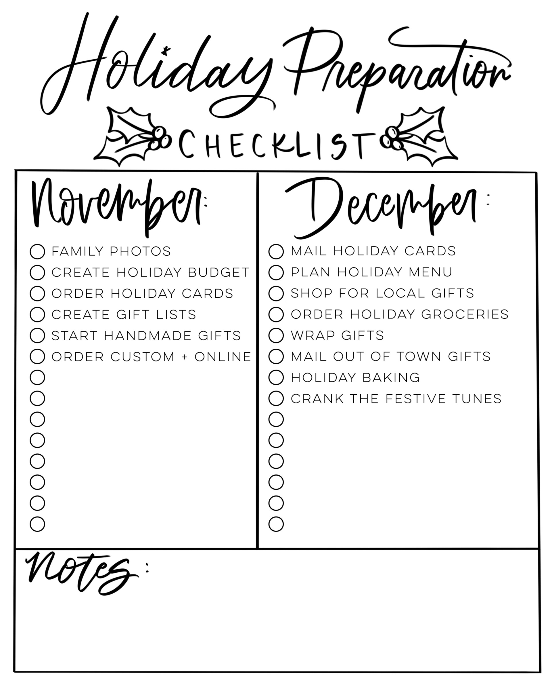 This holiday prep printable checklist is free to download to help take the overwhelm out of holiday planning and put it it one pretty little place!