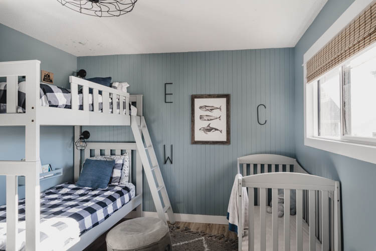 We made over our boys’ shared bedroom in 6 weeks as part of the One Room Challenge and the reveal is here! With a Nordic Industrial vibe- this blue boys room is packed with storage and simple, tone on tone style.