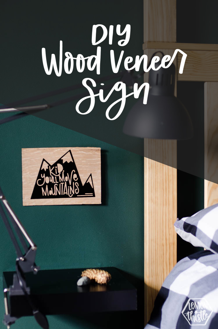 Alright, the second project is this fun little wood sign. It’s actually made out of wood veneer (from the hardware store) which is super thin. This makes it great for hanging with mounting tape or stick tack if you can’t use nails. BUT it also makes it real thin and easy to break. I moved it off the kiddos nightstand wall pretty quick. In hindsight… I totally should have done this with birch plywood (from the craft store) but I thought it would be fun to try something new.